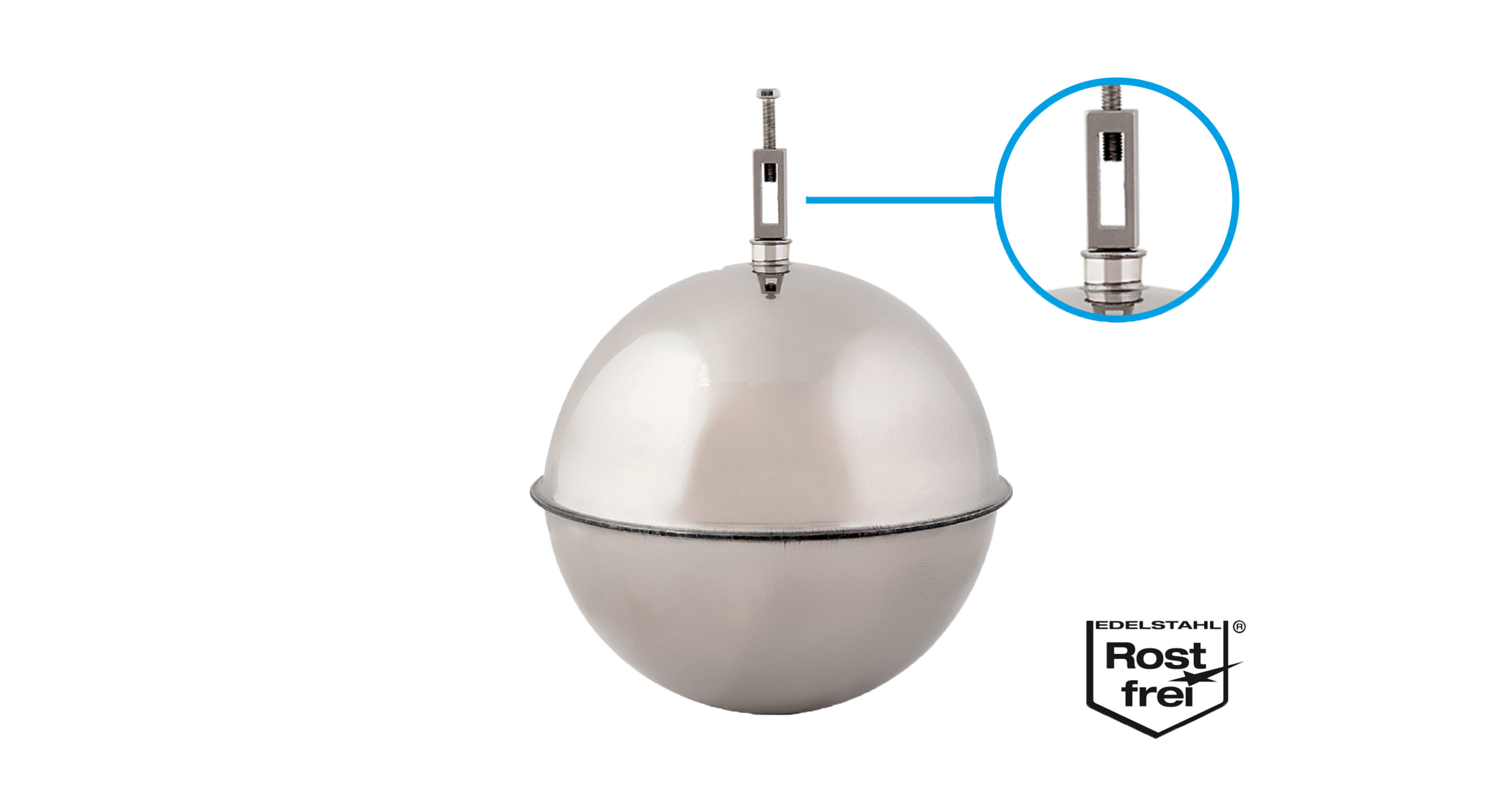 Stainless steel hollow float balls - with duplex mounting made of AISI 316 - V4A in diameters from 90 - 220mm especially in combination with the float valve series stainless steel Diamond the float for highest demands on material, quality and workmanship. The duplex mounting is innovative and allows the attachment in 2 variants. On external thread and on float rods.